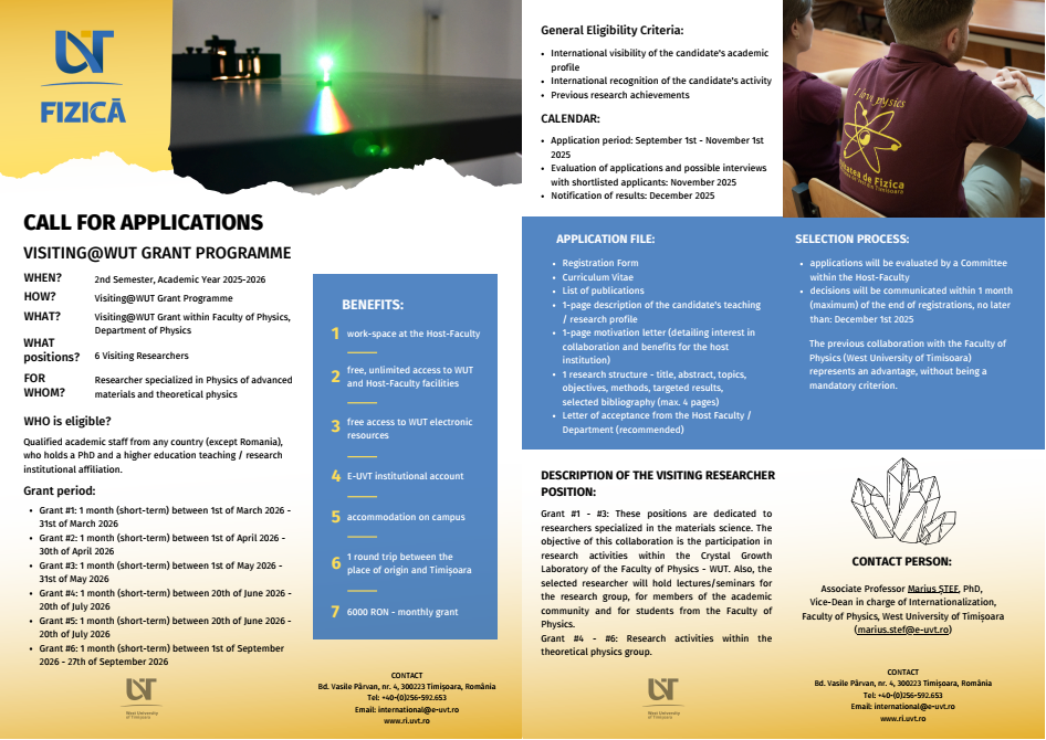 Facultatea de Fizică din cadrul Universității de Vest din Timișoara, pe primul loc din țară în ediția 2020 a Shanghai Ranking’s Global Ranking of Academic Subjects!