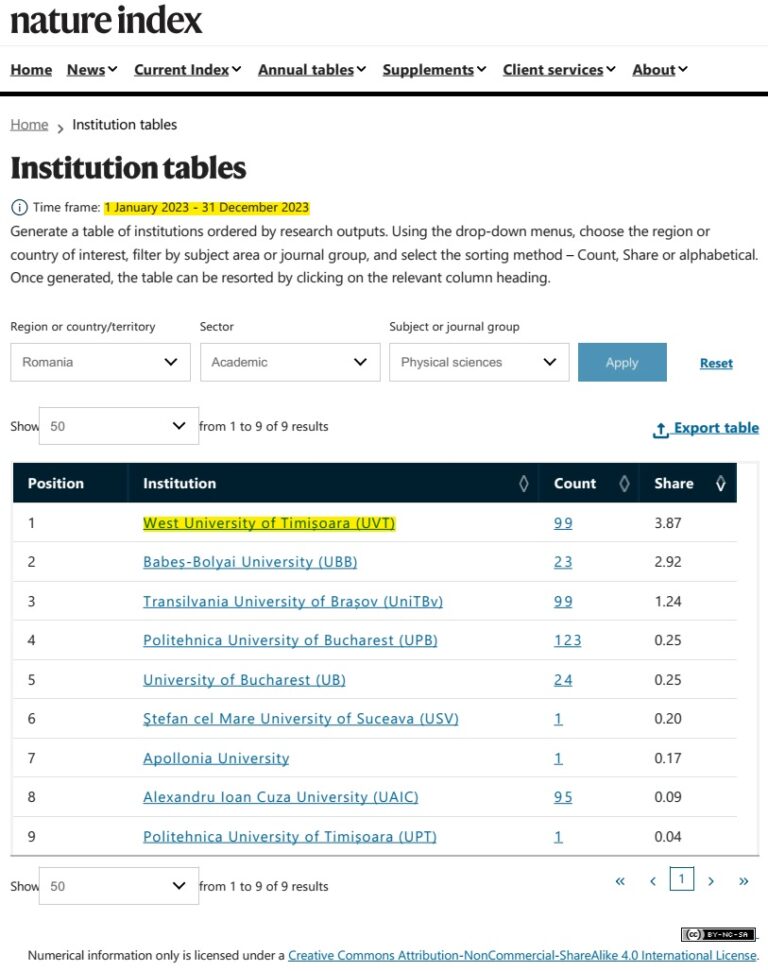 Facultatea de Fizică din cadrul Universității de Vest din Timișoara, pe primul loc din țară și în ediția 2021 a Shanghai Ranking’s Global Ranking of Academic Subjects!